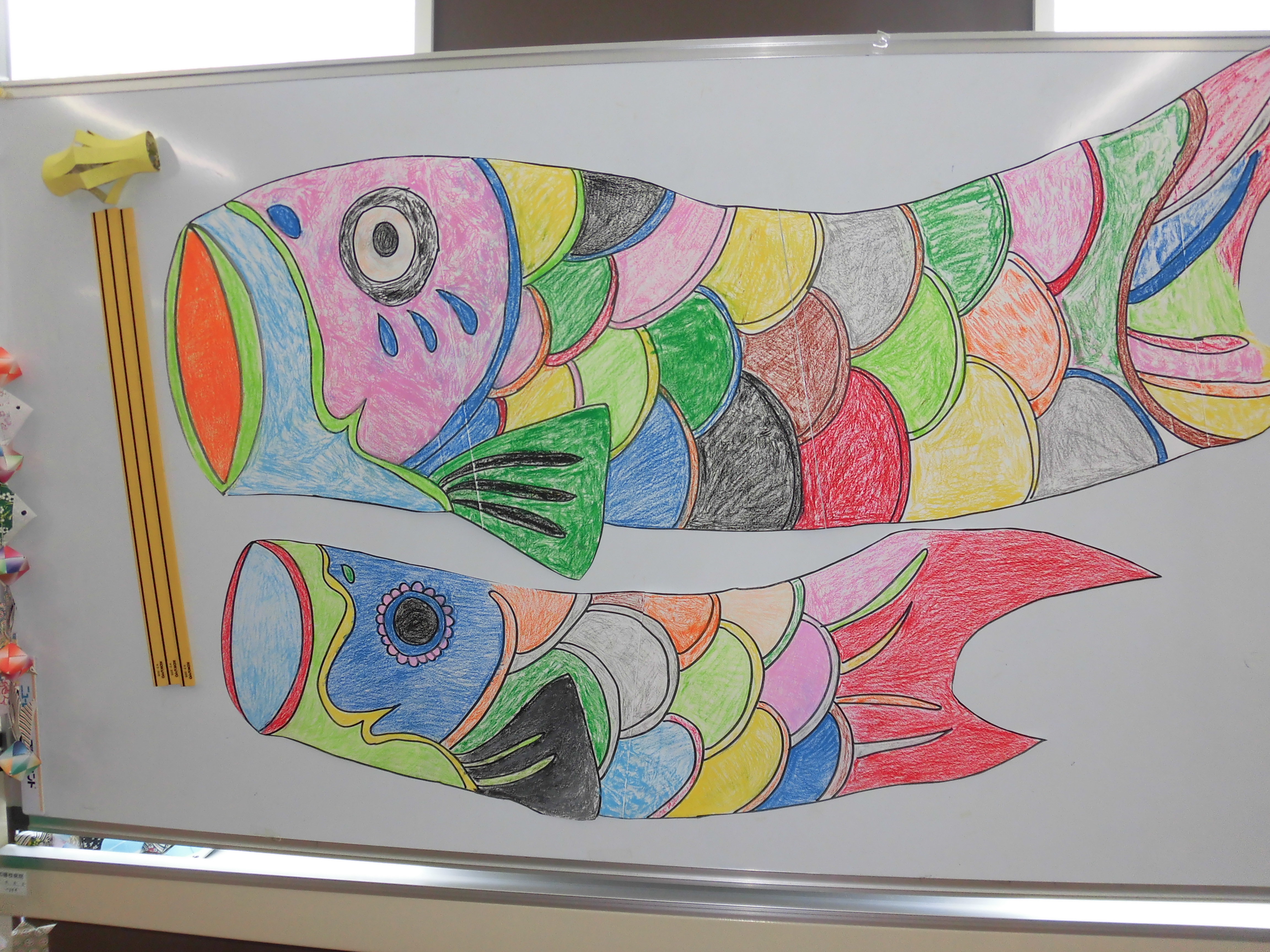 こいのぼり うろこは立体的です。 5月といえば、こいのぼりですね。 誠和藤枝病院の病棟の中でもたくさんのこいのぼりが泳いでいます。 患者さんたちと一緒に作ったりしています。 病棟にいらした際は、是非ご覧になってください。 かわいいです。 きれいな色を塗っています。